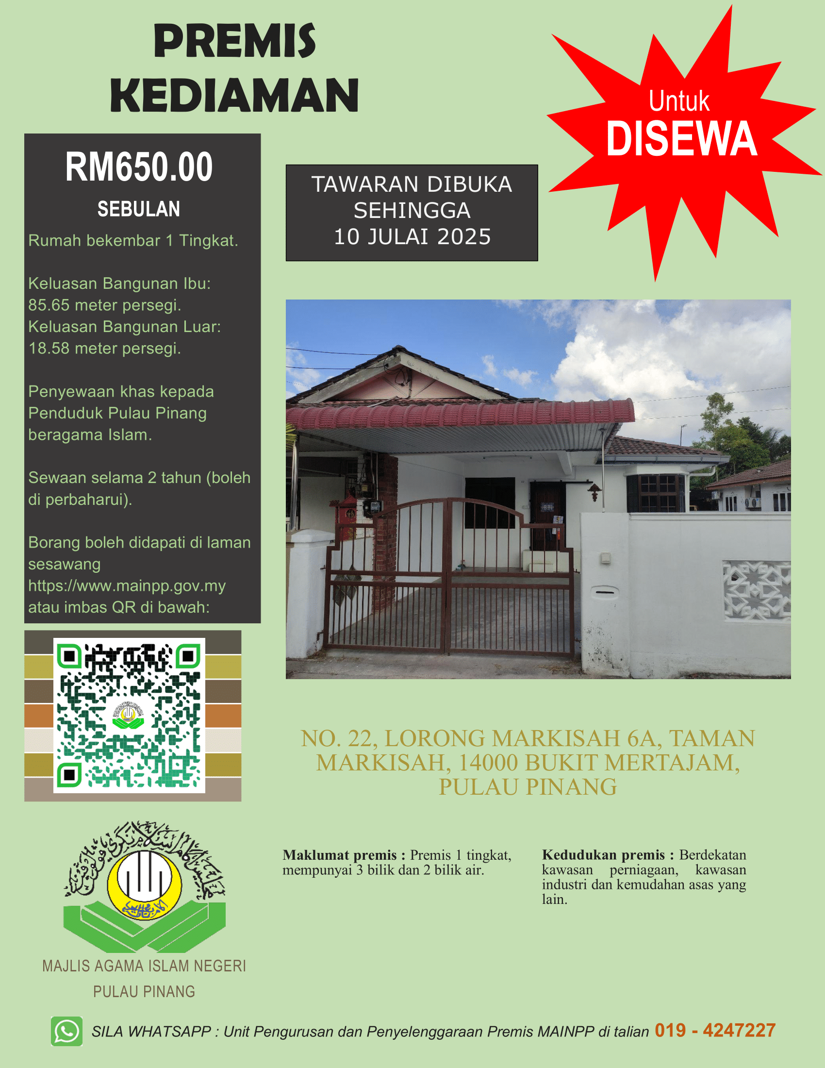 Iklan Penyewaan Premis Kediaman Taman Markisah